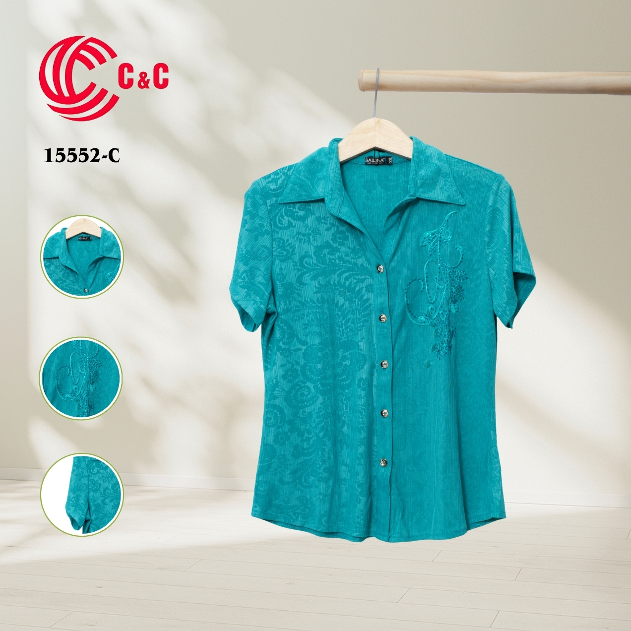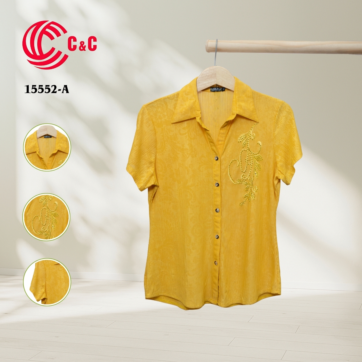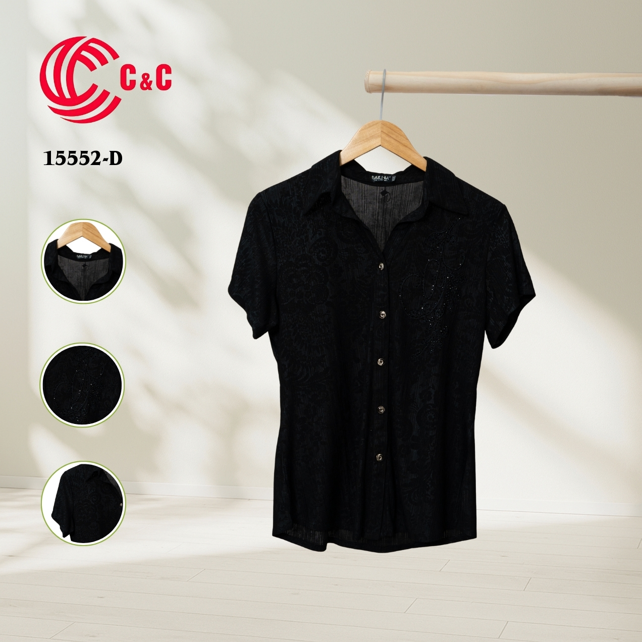 15552 - Tay Ngắn Vải Thun Thêu Họa Tiết Trang Trí Đá Thủy Tinh