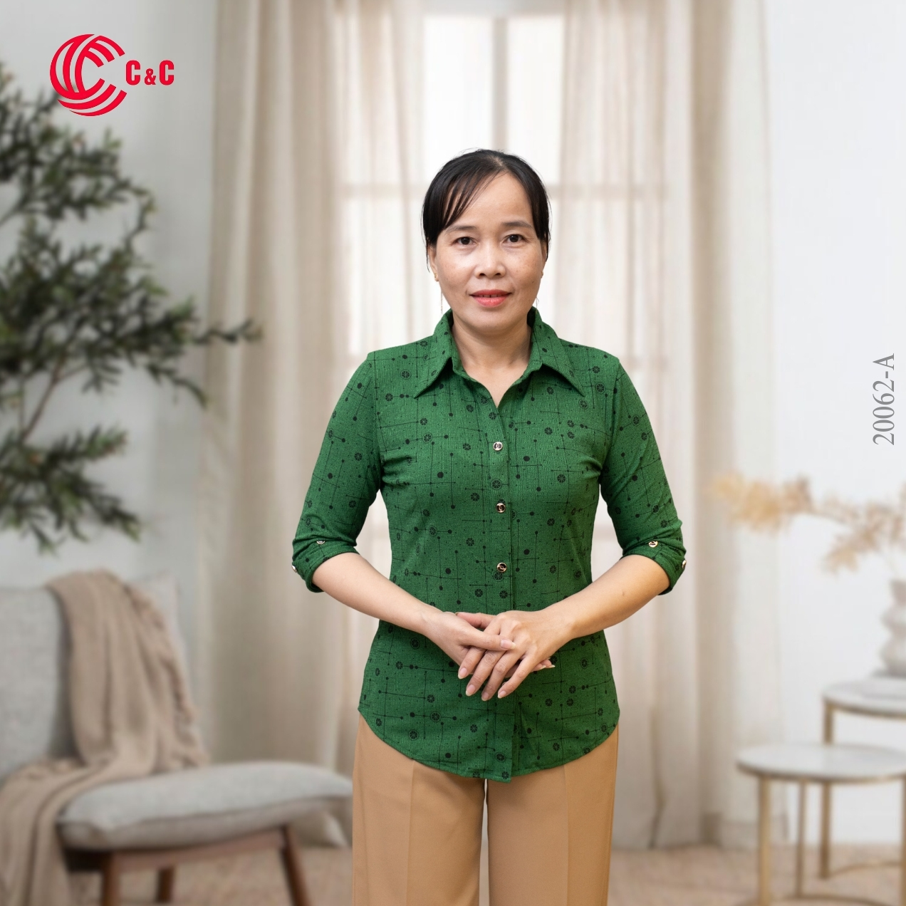 - Vải thun Hàn in họa tiết điểm tròn cách điệu, co giãn 4 chiều, mềm mại. May 1 lớp dày dặn nhưng vẫn thoáng mát, tạo cảm giác dễ chịu và thoải mái suốt ngày dài