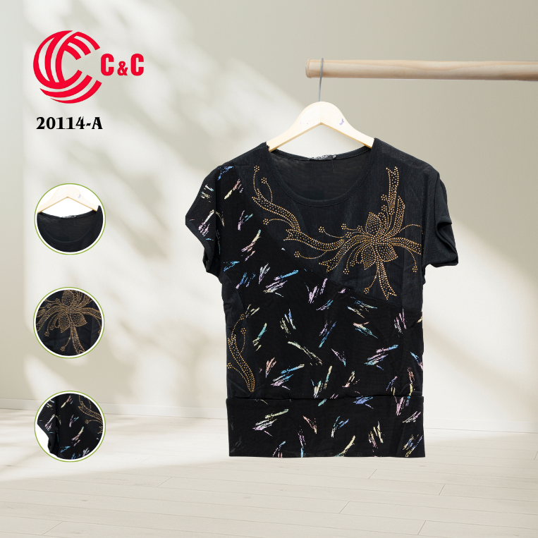 - Thân trước rã chéo phối lưới kim tuyến đen, trang trí họa tiết hoa văn uốn lượn bằng đá màu trà (hoặc vàng đồng), tạo điểm nhấn sang trọng