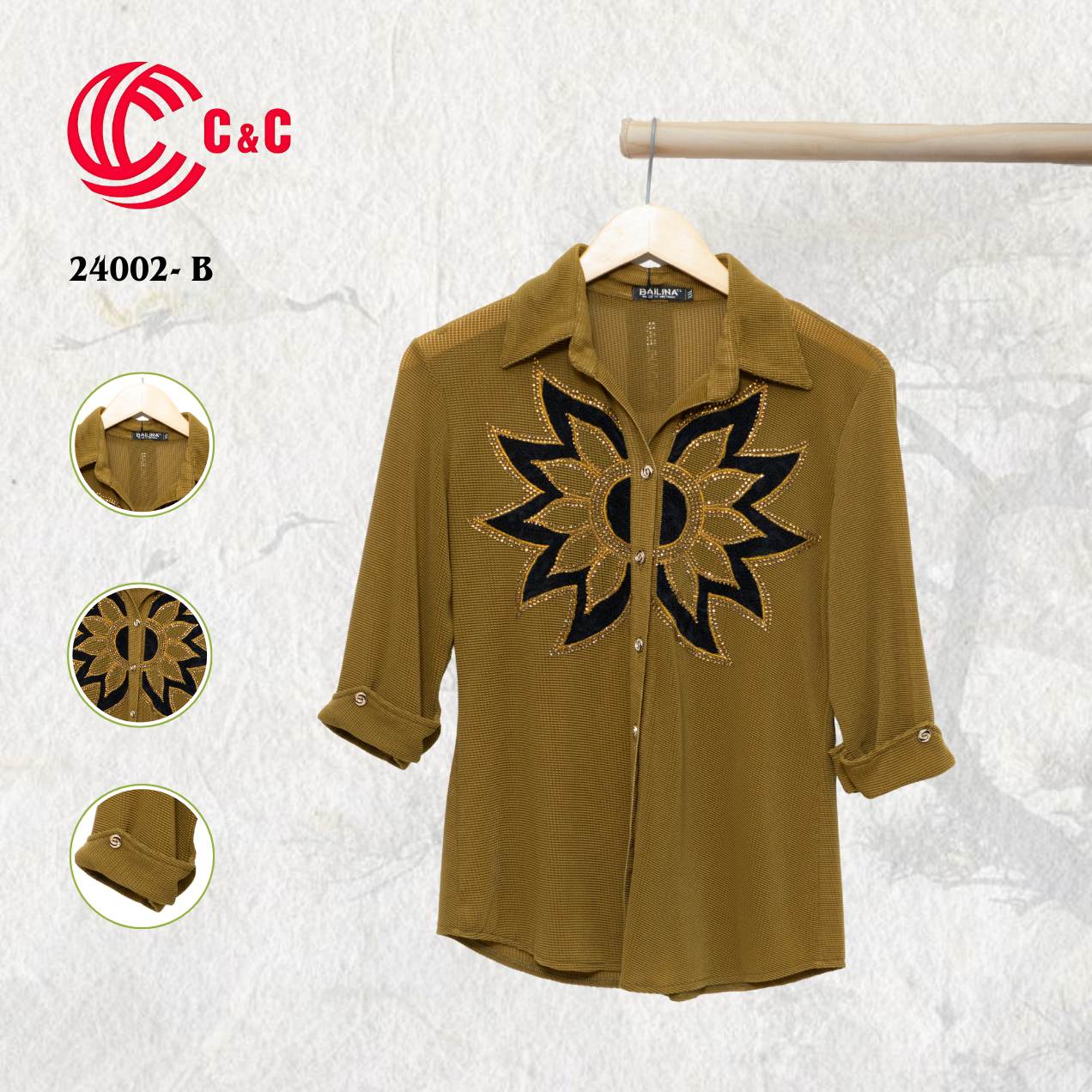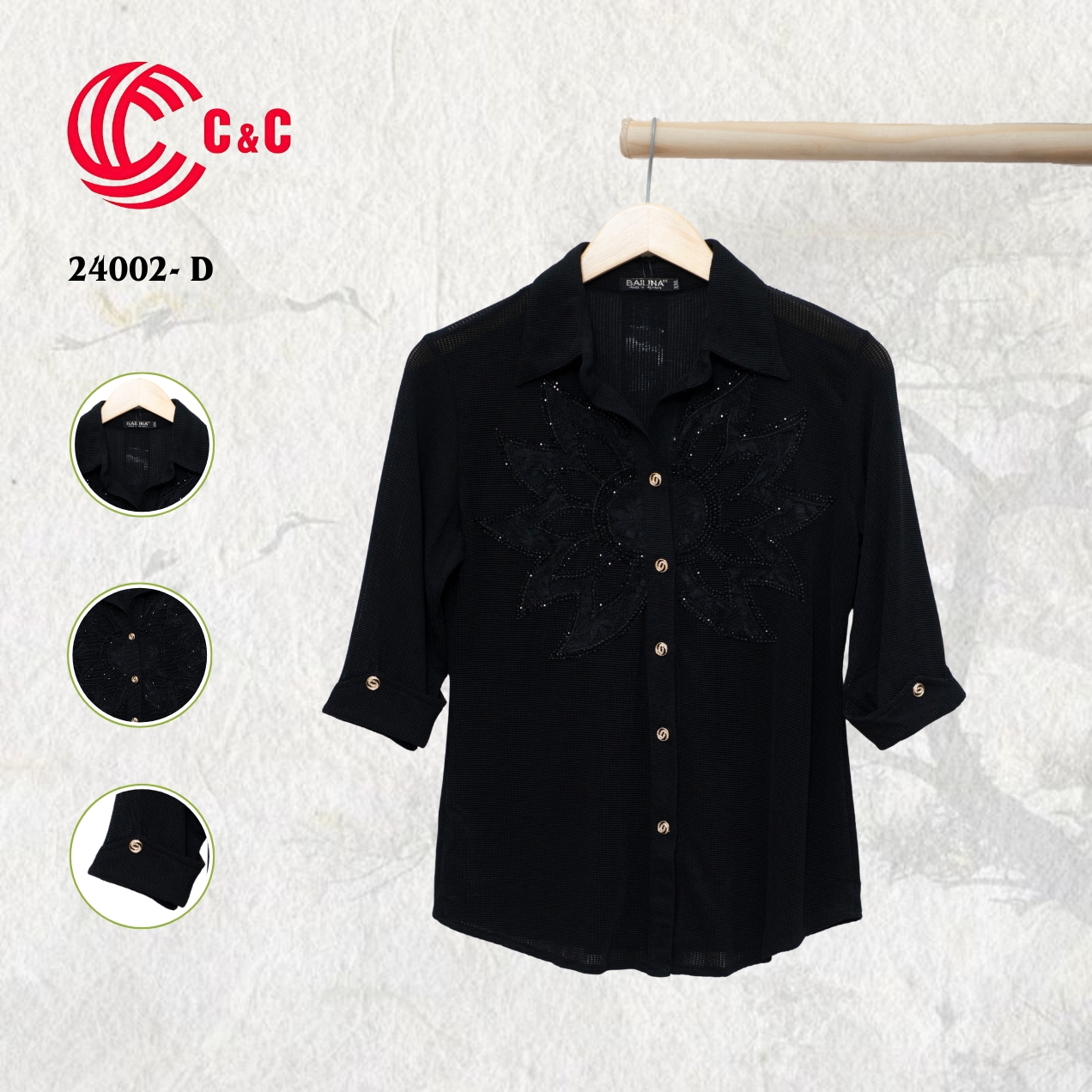 - Phần ngực áo thêu phối ren đen nổi hình hoa hướng dương đối xứng hai bên.