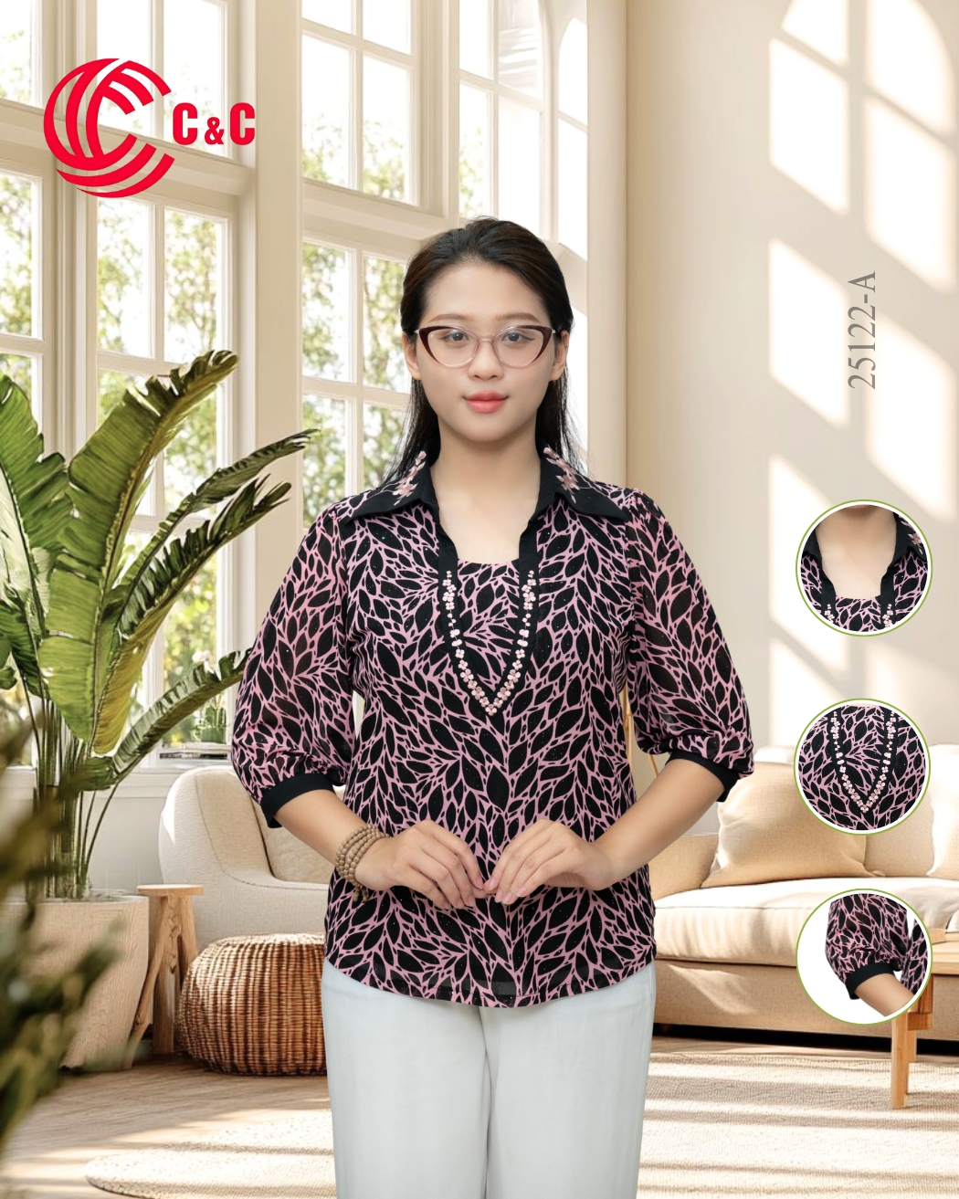 - Tay áo bo nhẹ tạo độ phồng vừa phải, giúp cánh tay trông thon gọn hơn, đồng thời tăng nét mềm mại, nữ tính cho tổng thể