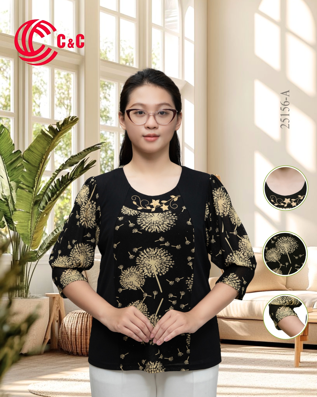- Thiết kế nổi bật với họa tiết thêu tinh tế trên cổ áo bằng chỉ tơ bóng, tạo điểm nhấn thu hút ánh nhìn từ màu sắc rực rỡ của chỉ thêu. Phần thân áo được phối vải in họa tiết hoa bồ công anh mang cảm hứng thiên nhiên, tạo cảm giác mềm mại, nữ tính và đầy sức sống
