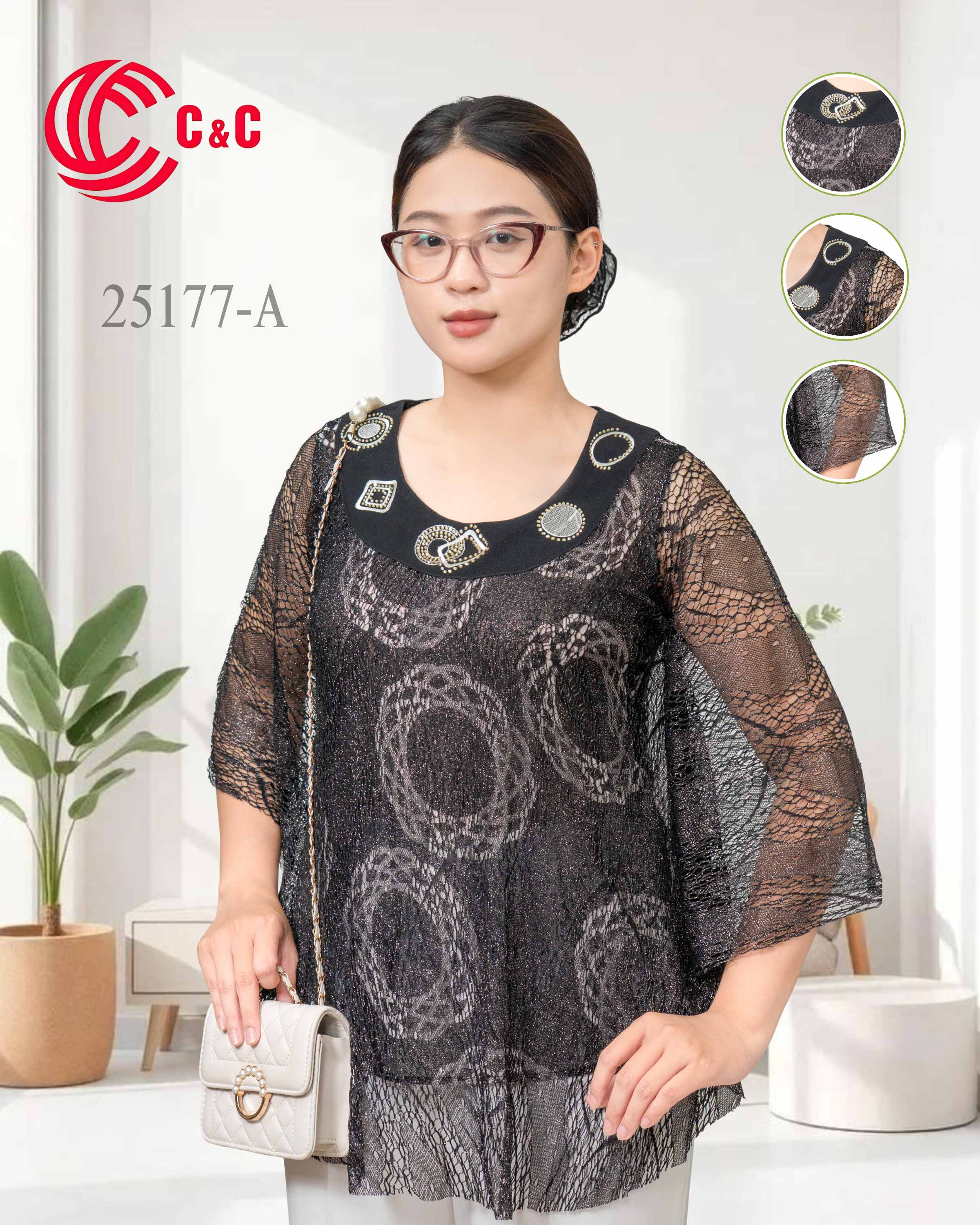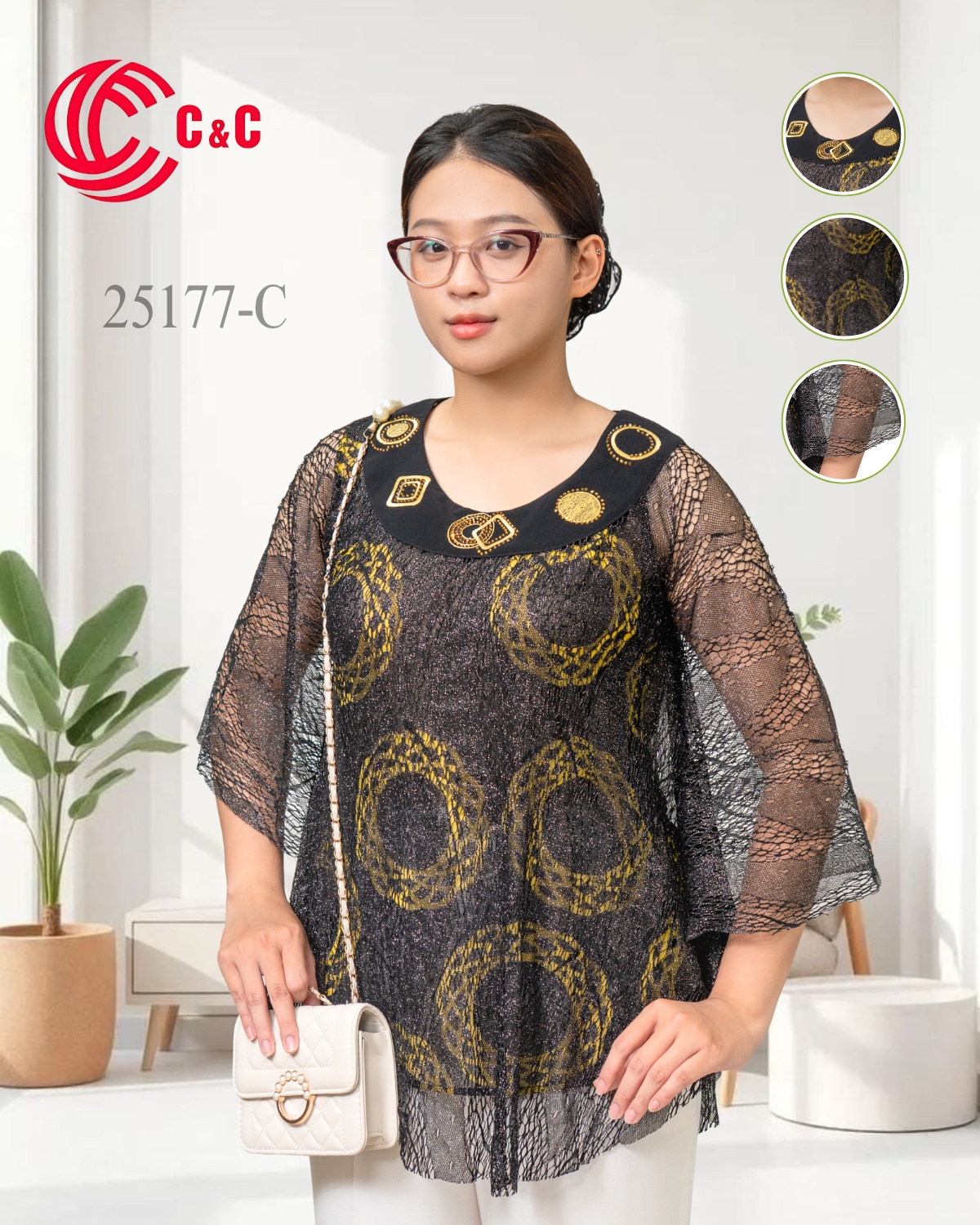 - Áo được thiết kế với lớp vải lưới ngoài dạng áo cánh tiên với tay áo liền thân áo tạo độ mềm mại, đồng thời che khuyết điểm bắp tay hiệu quả. Lớp vải bên trong in họa tiết với phom suông tạo độ thoải mái, tổng thể mang lại vẻ ngoài thanh thoát và nữ tính