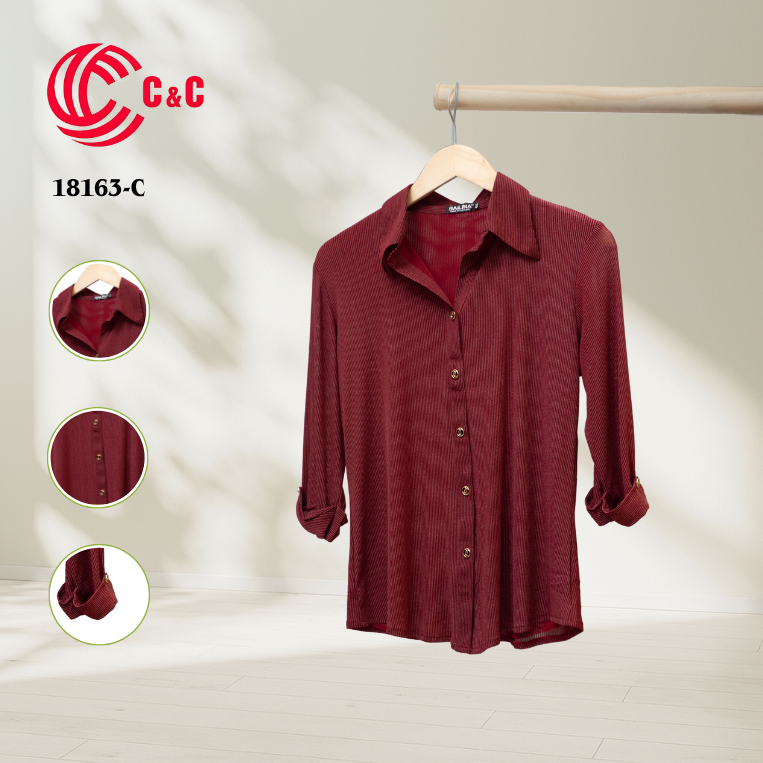 - Phần bo tay được lật lên trên và may khoét chữ V đính nút 2 bên tạo điểm nhấn nhẹ nhàng