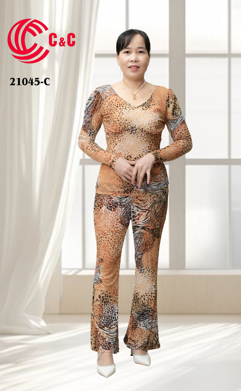 21045 - Cổ Tim Quần Ống Loe Phom Ôm